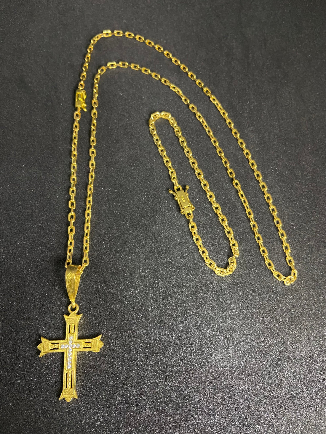 Cordão 3x1 1,5mm - Cruz palito banhado a ouro 18k