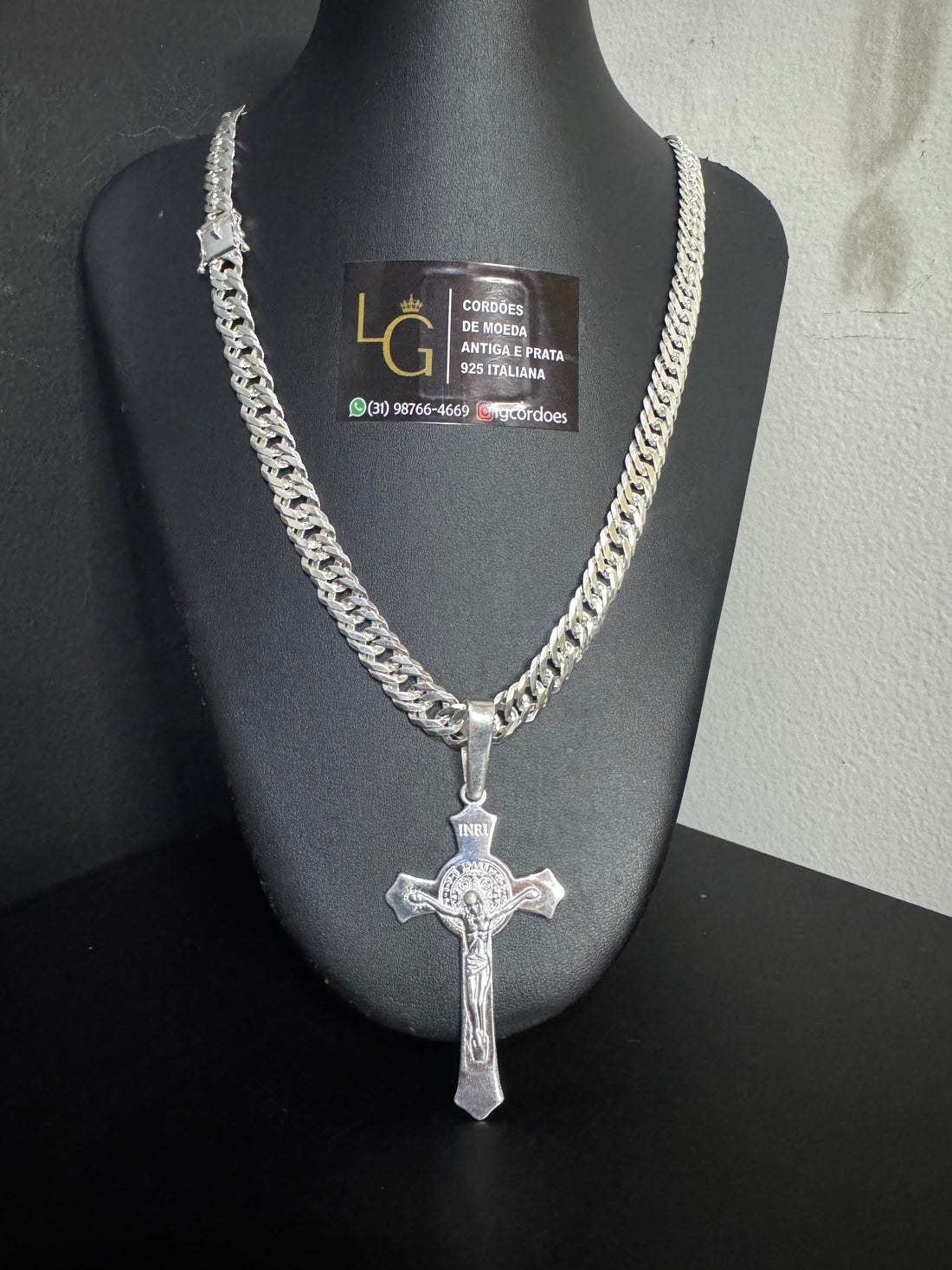 Cordão Grumet Duplo 10mm Gaveta - Cruz Crucifixo Prata 925