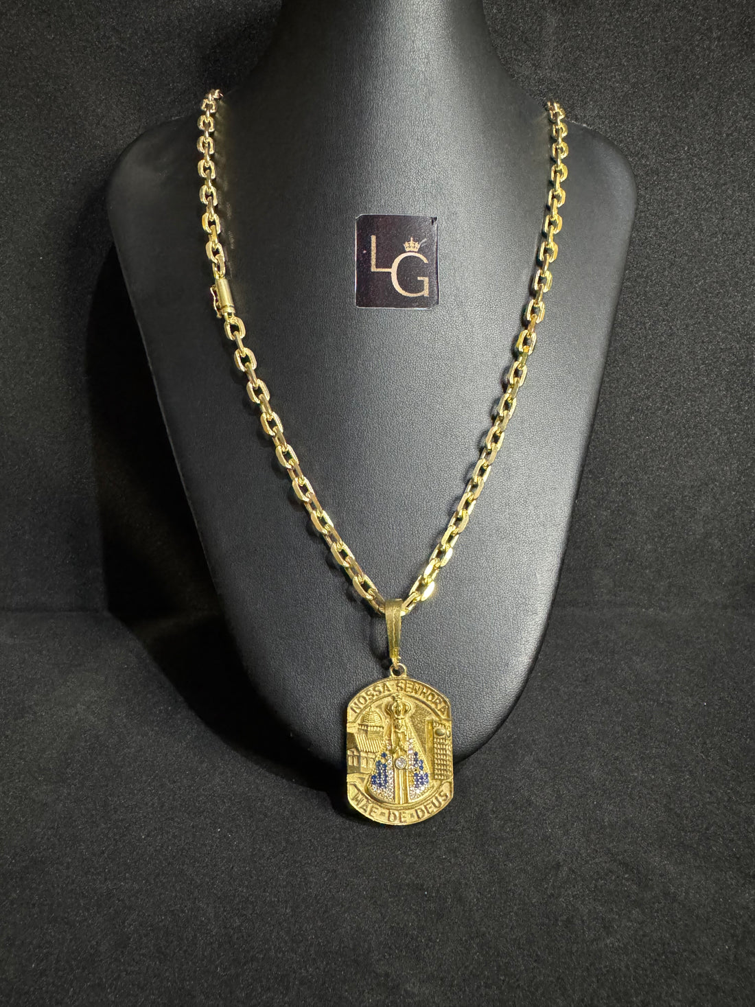 Cordão Cadeado quina 5mm -Nossa Senhora Aparecida Mãe de Deus