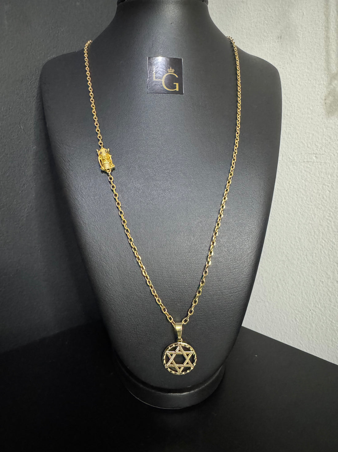 Cordão Cordão Cadeado Q 3mm Gaveta nossa senhora - Estrela de Davi Banhado a Ouro