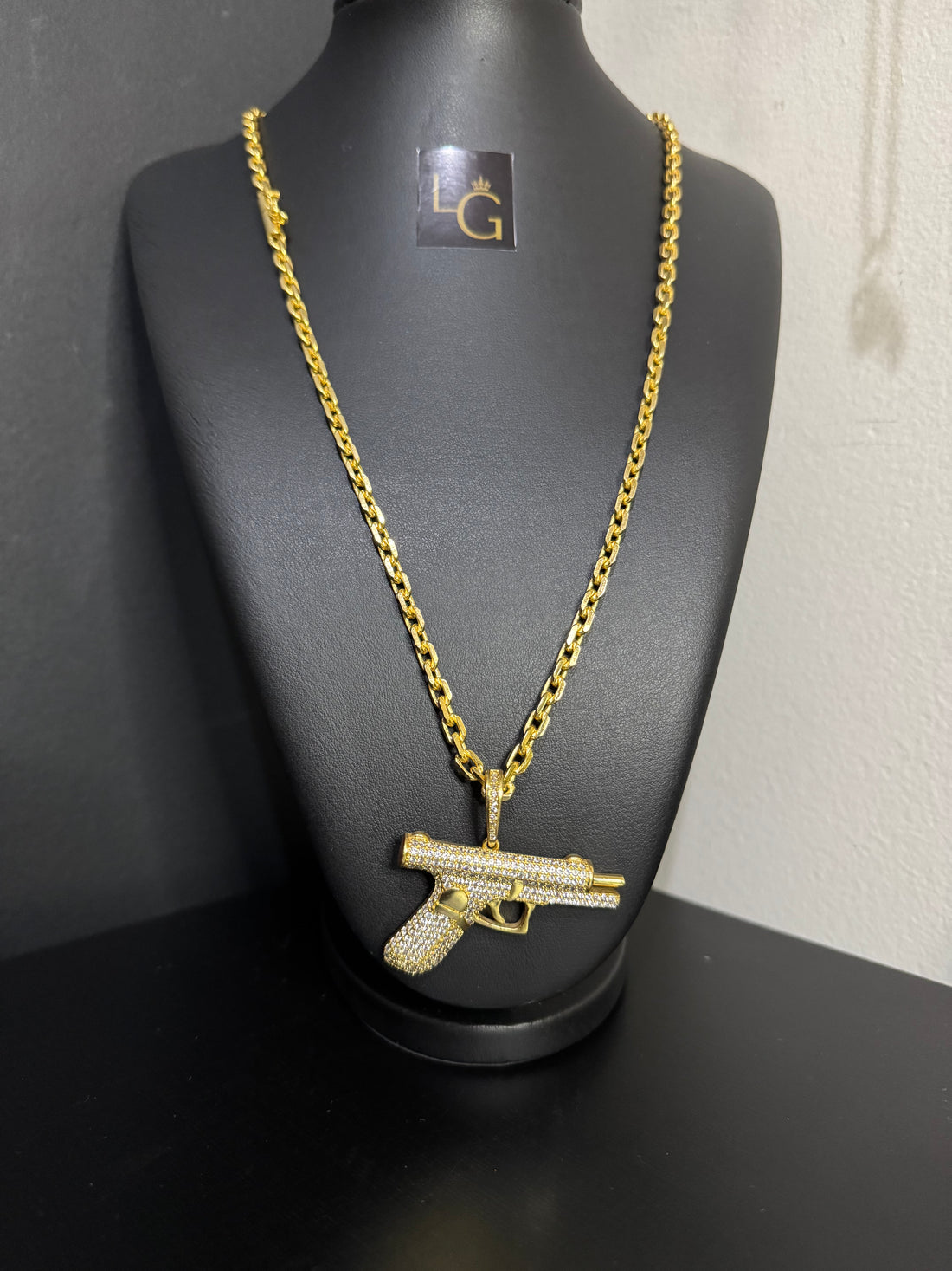 Cordão cadeado Q 6mm - Glock Cravejado Banhado a Ouro