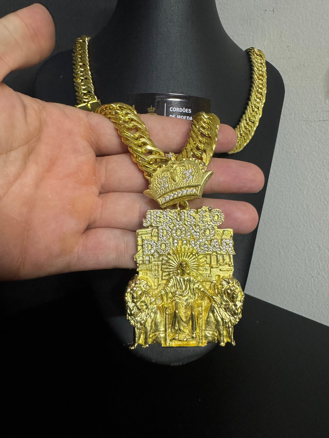 Cordão Nino Abravanel Cadeado Duplo 14mm - Detalhado Jesus é o Dono do Lugar