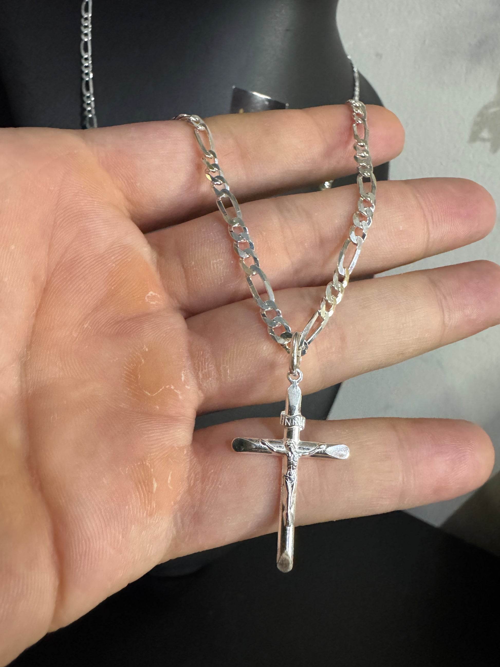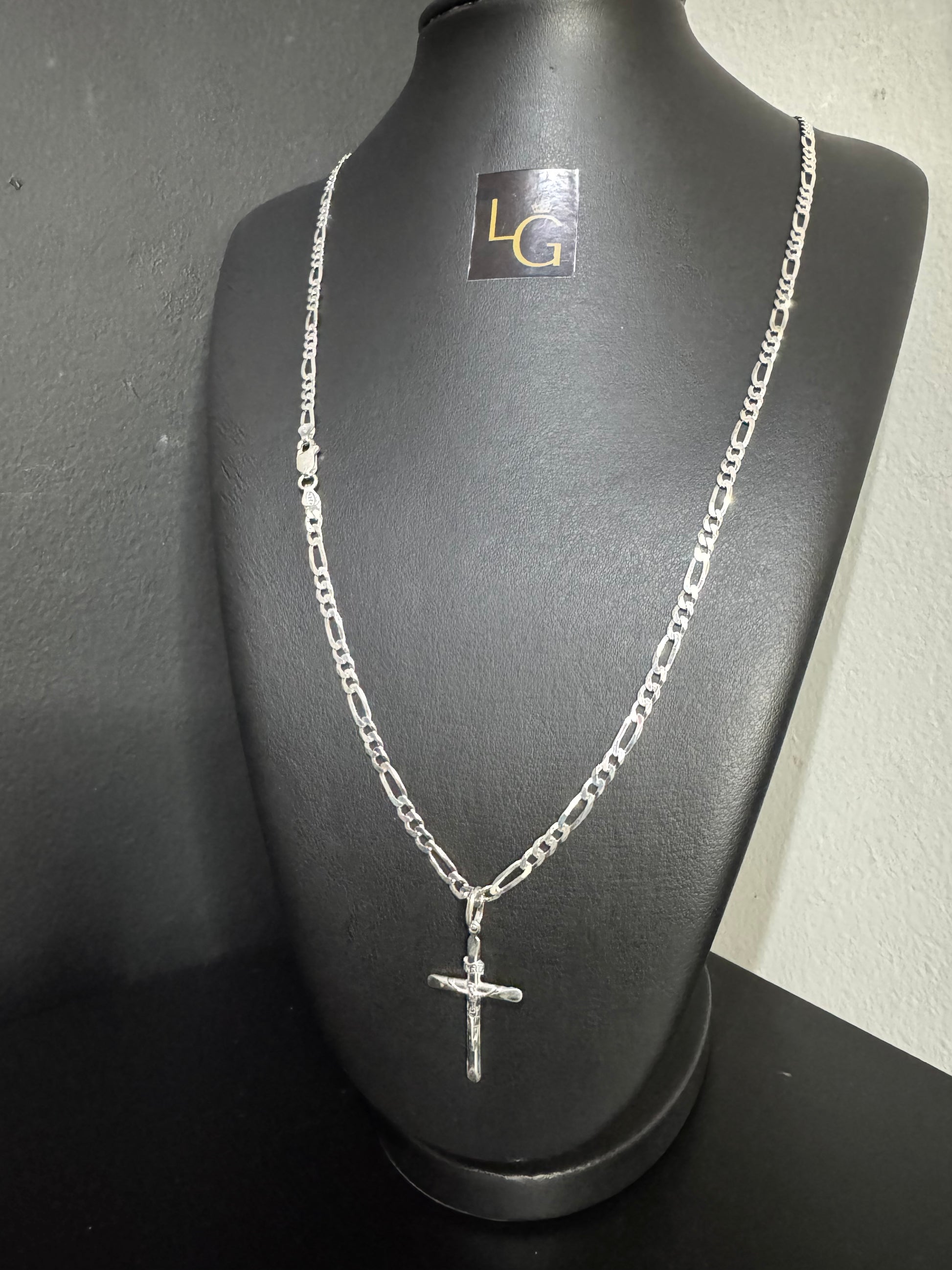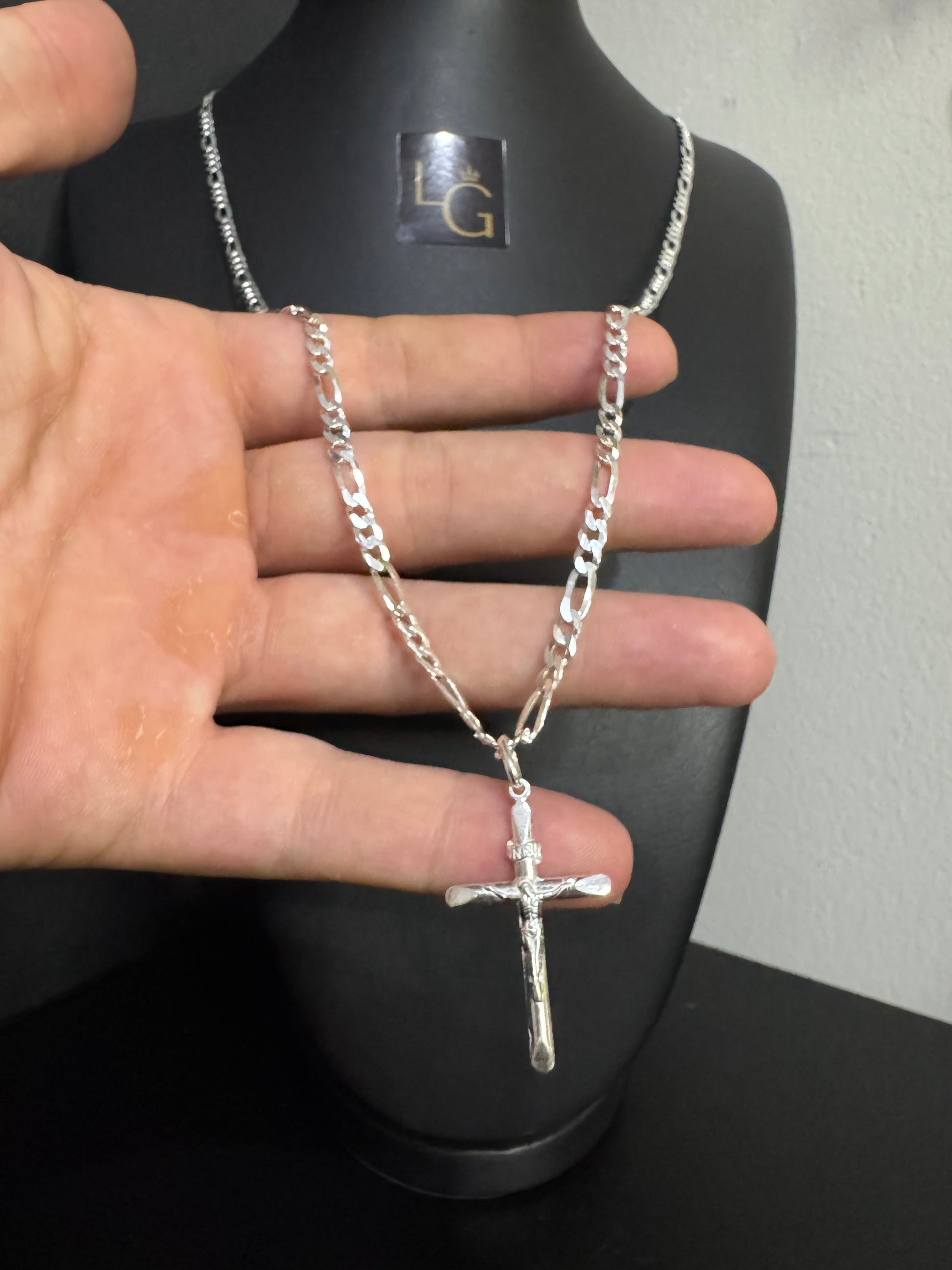 Cordão 3x1 4mm - Crucifixo M Prata 925