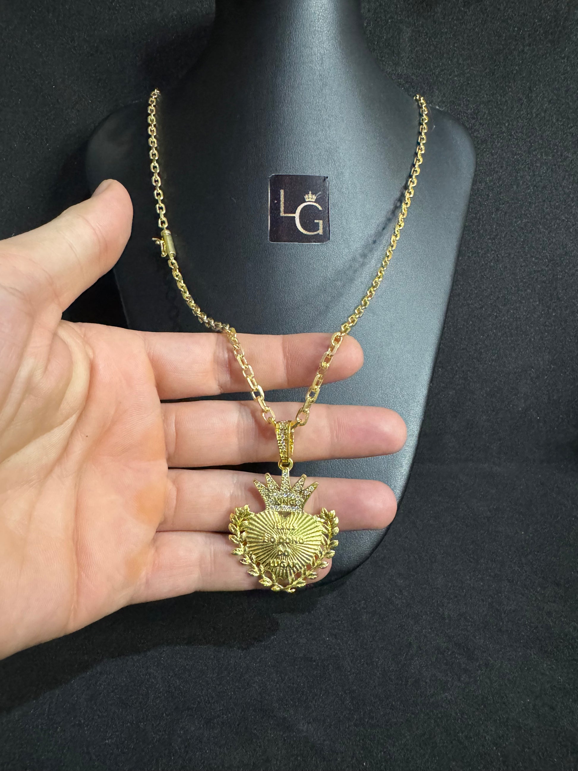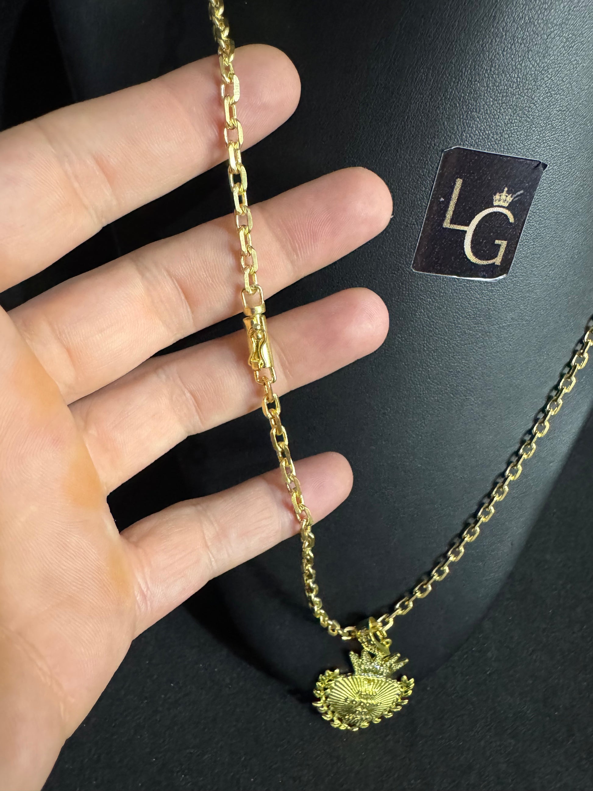 Cordão cadeado quina 3mm - Coração Jesus é o Dono do Lugar