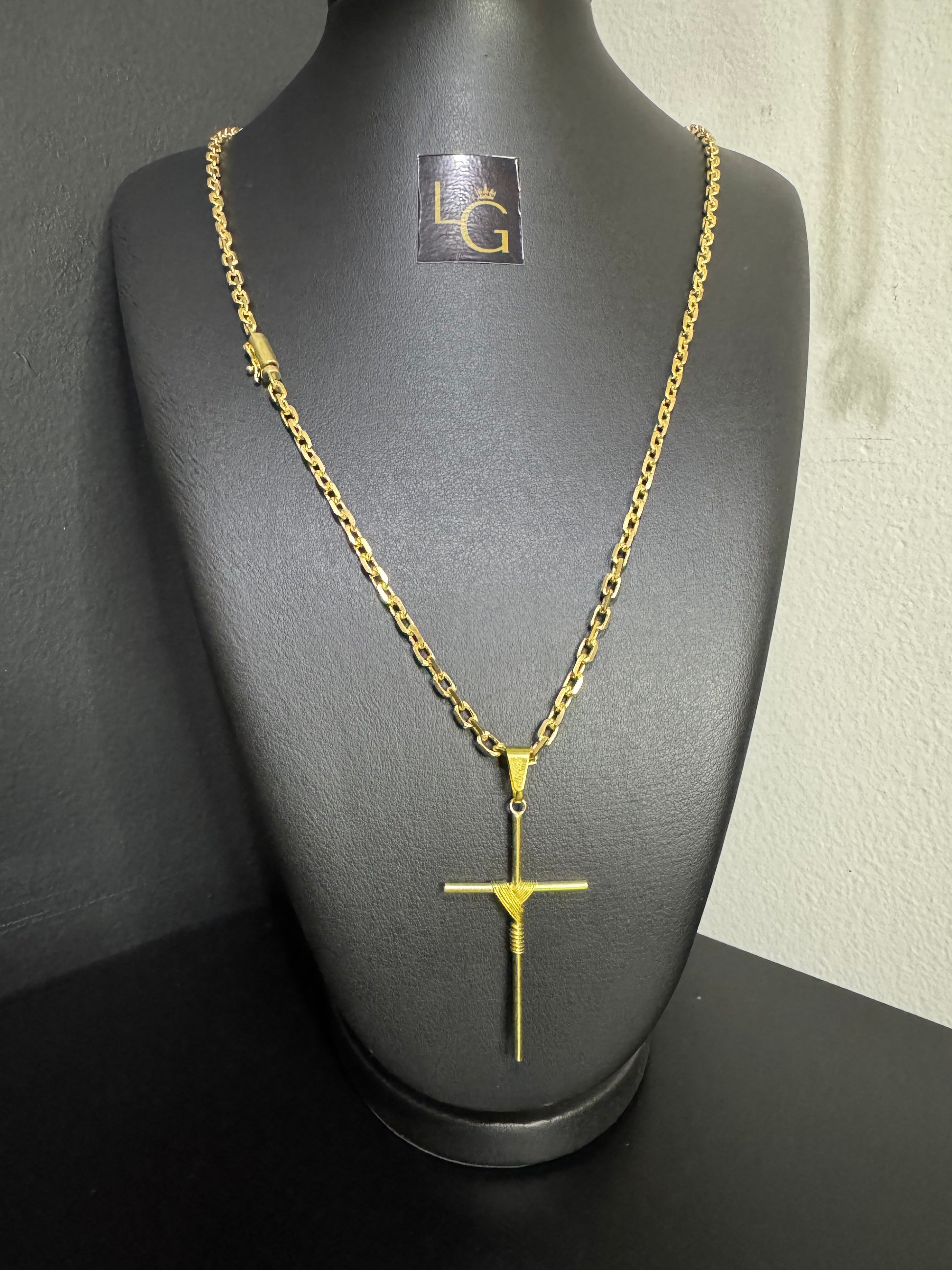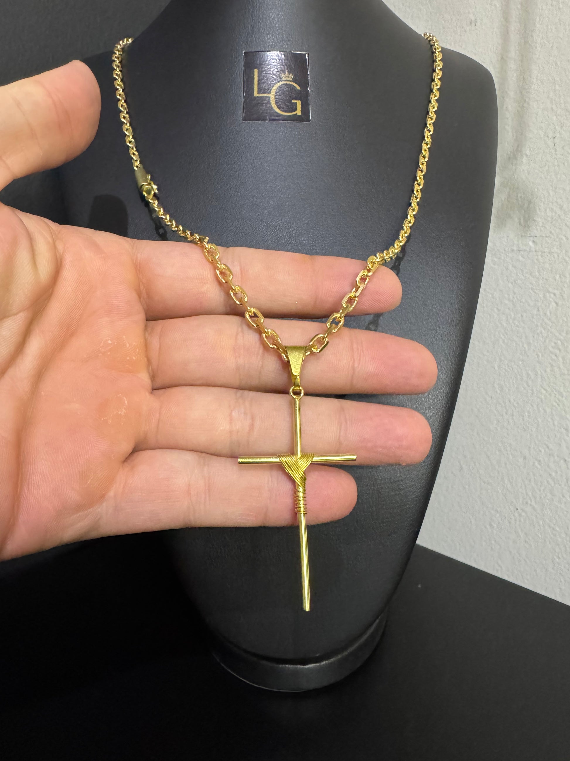 Cordão Cadeado Quina 3mm - Cruz palito P