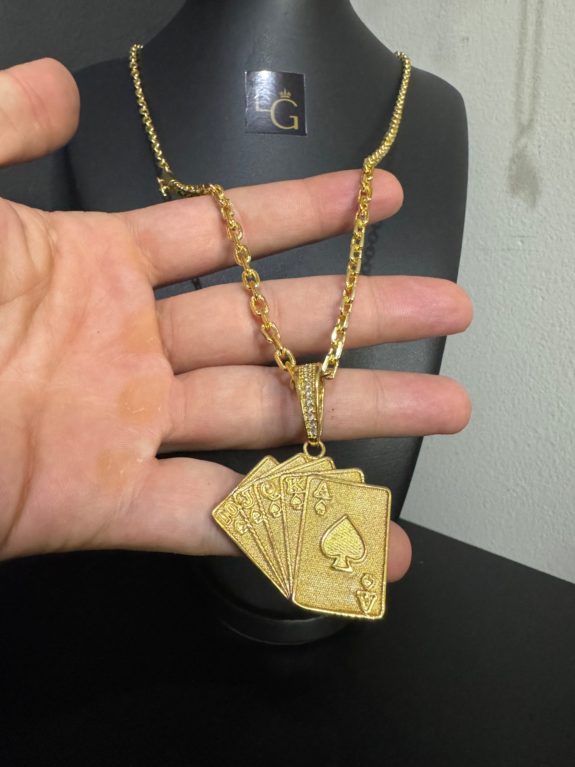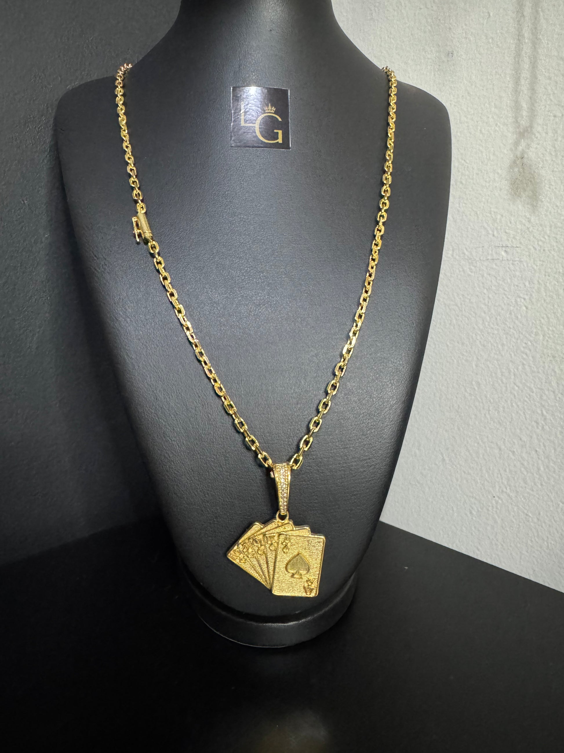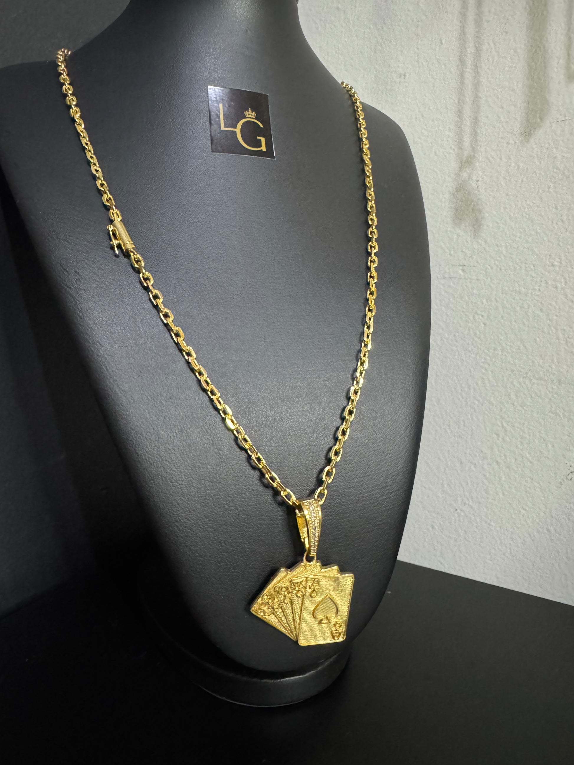 Cordão Cadeado Quina 4mm - Cartas Baralho Banhado a Ouro