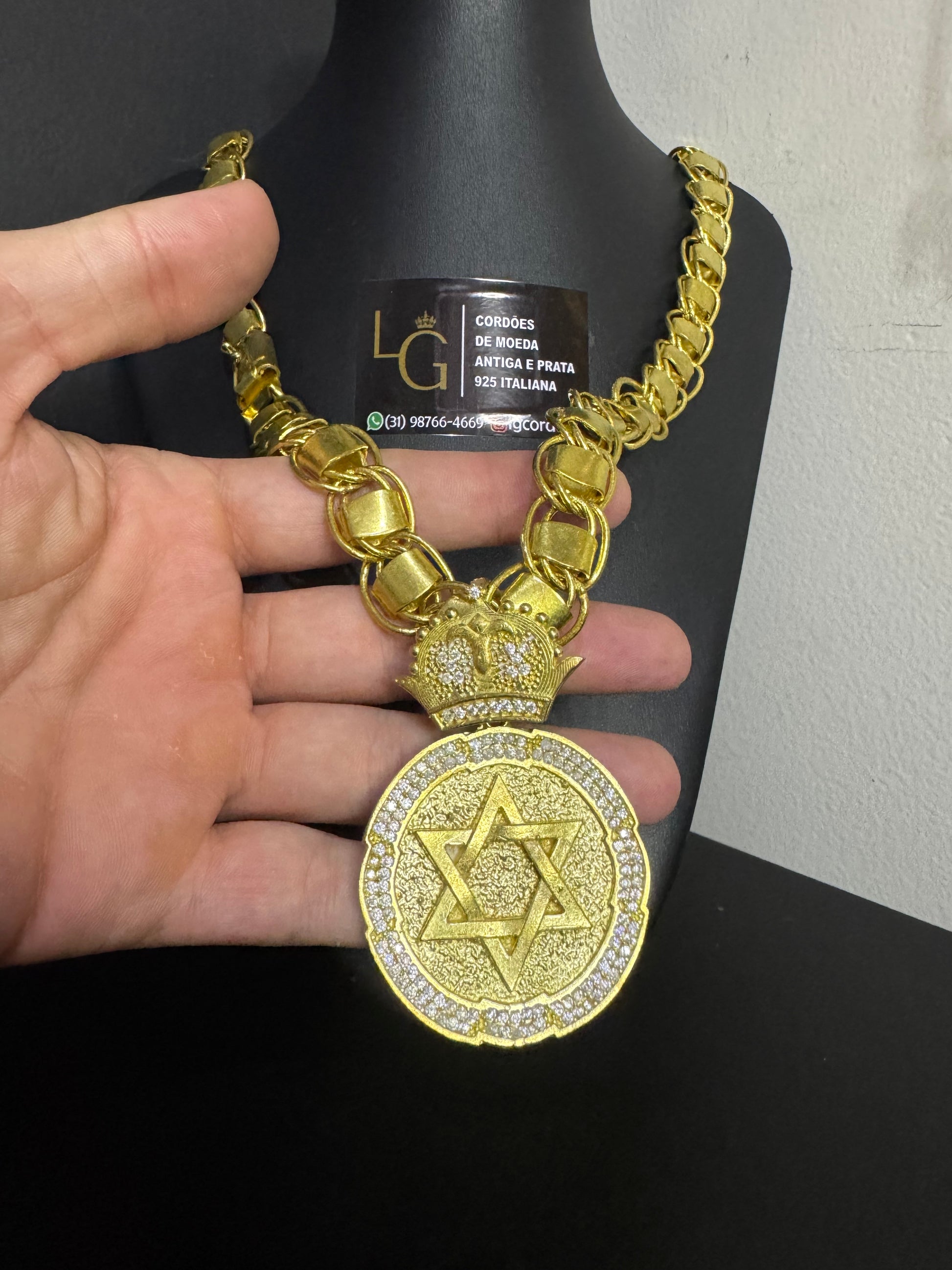 Cordão Dubai 15mm - Estrela de Davi Redondo G