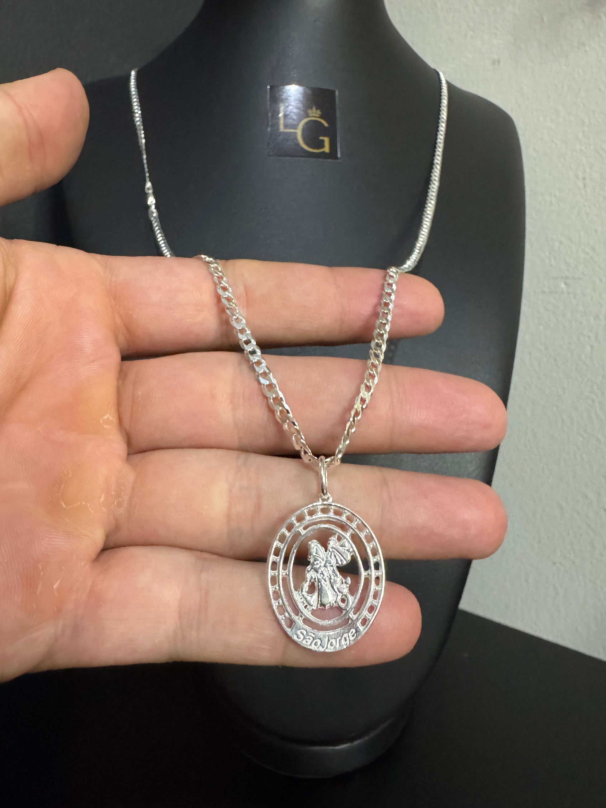 Cordão Grumet 3mm - São Jorge Detalhado Prata 925