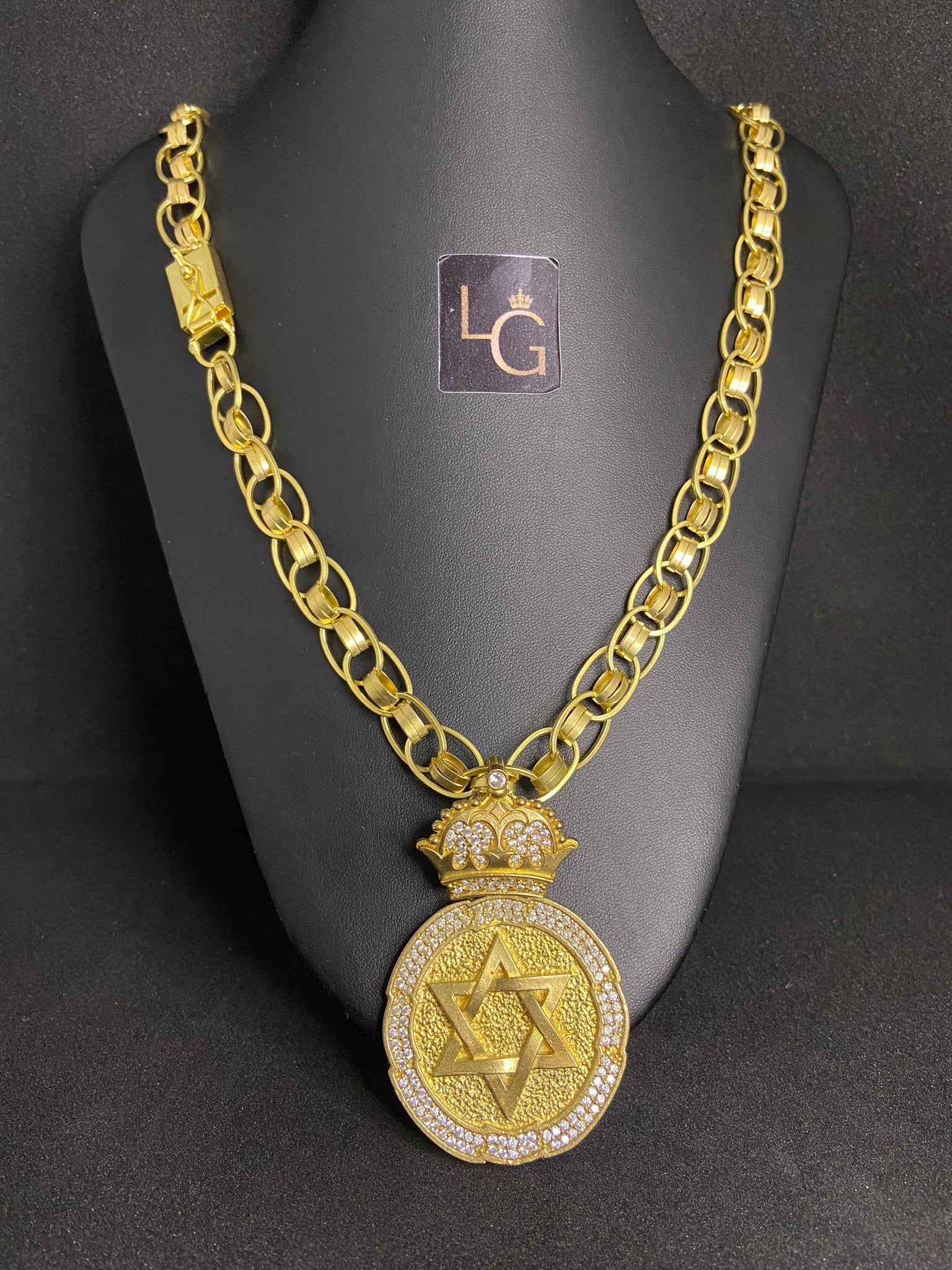 Cordão Imperador Redonda 12mm - Estrela de Davi Redondo G