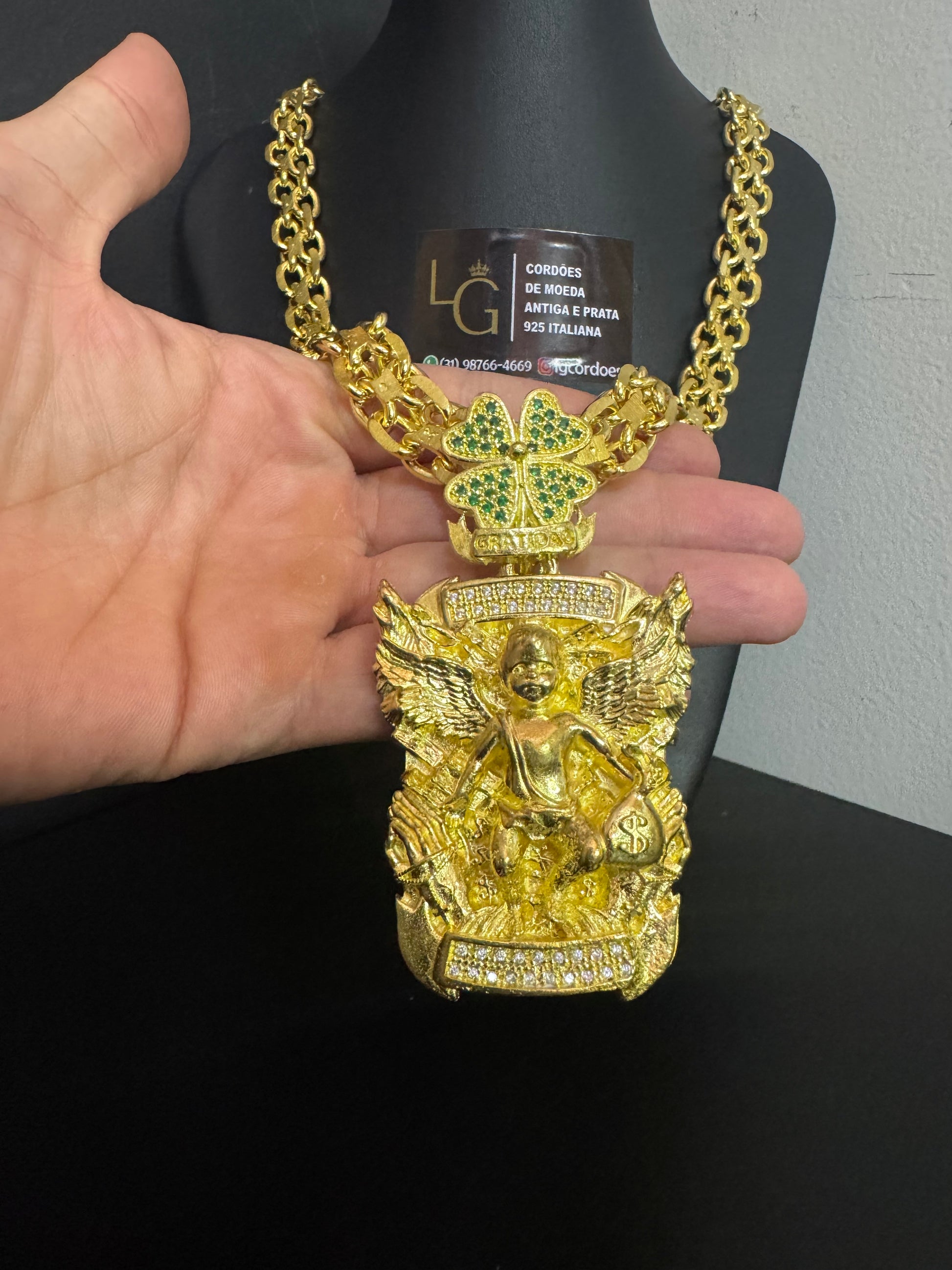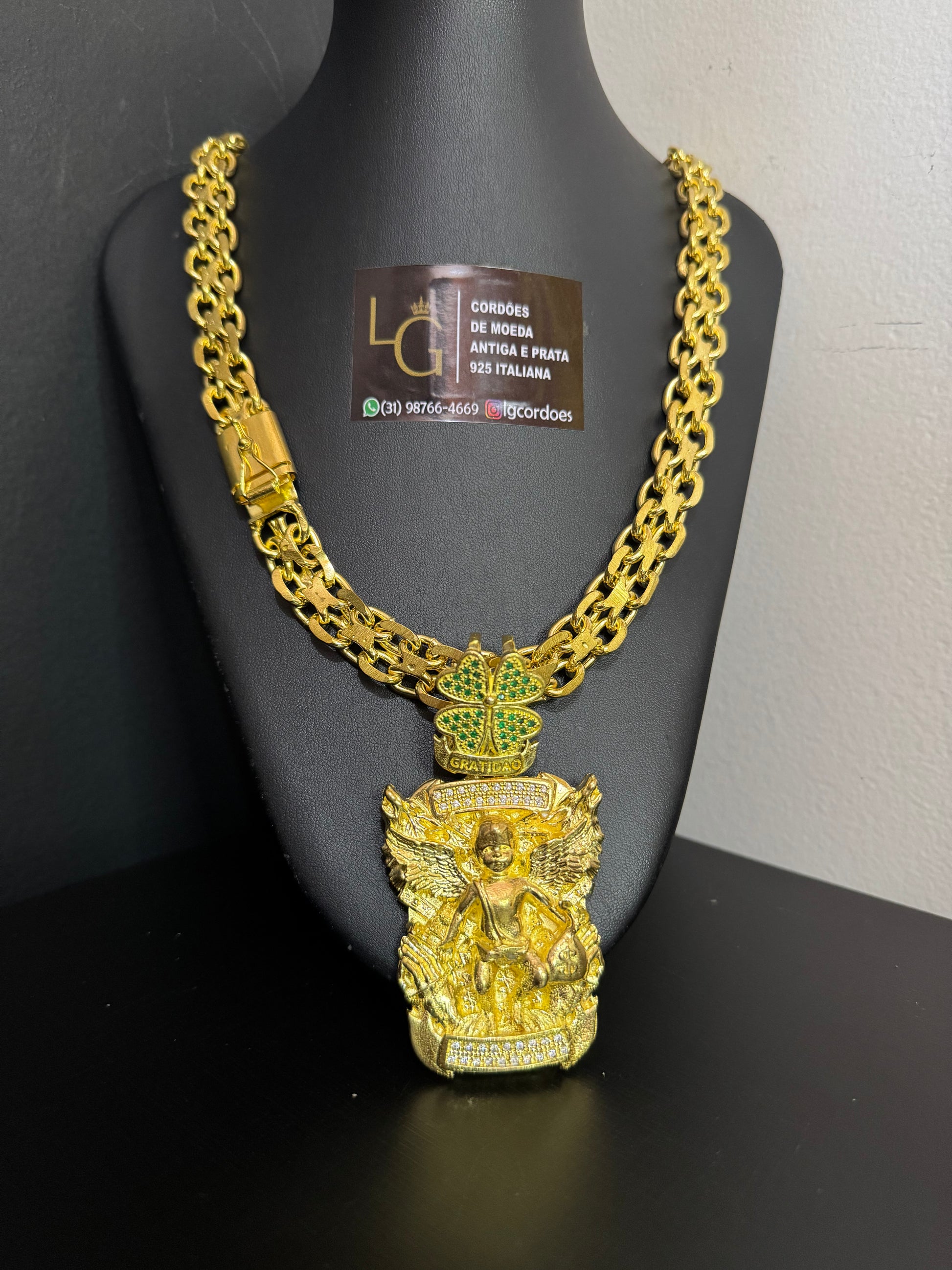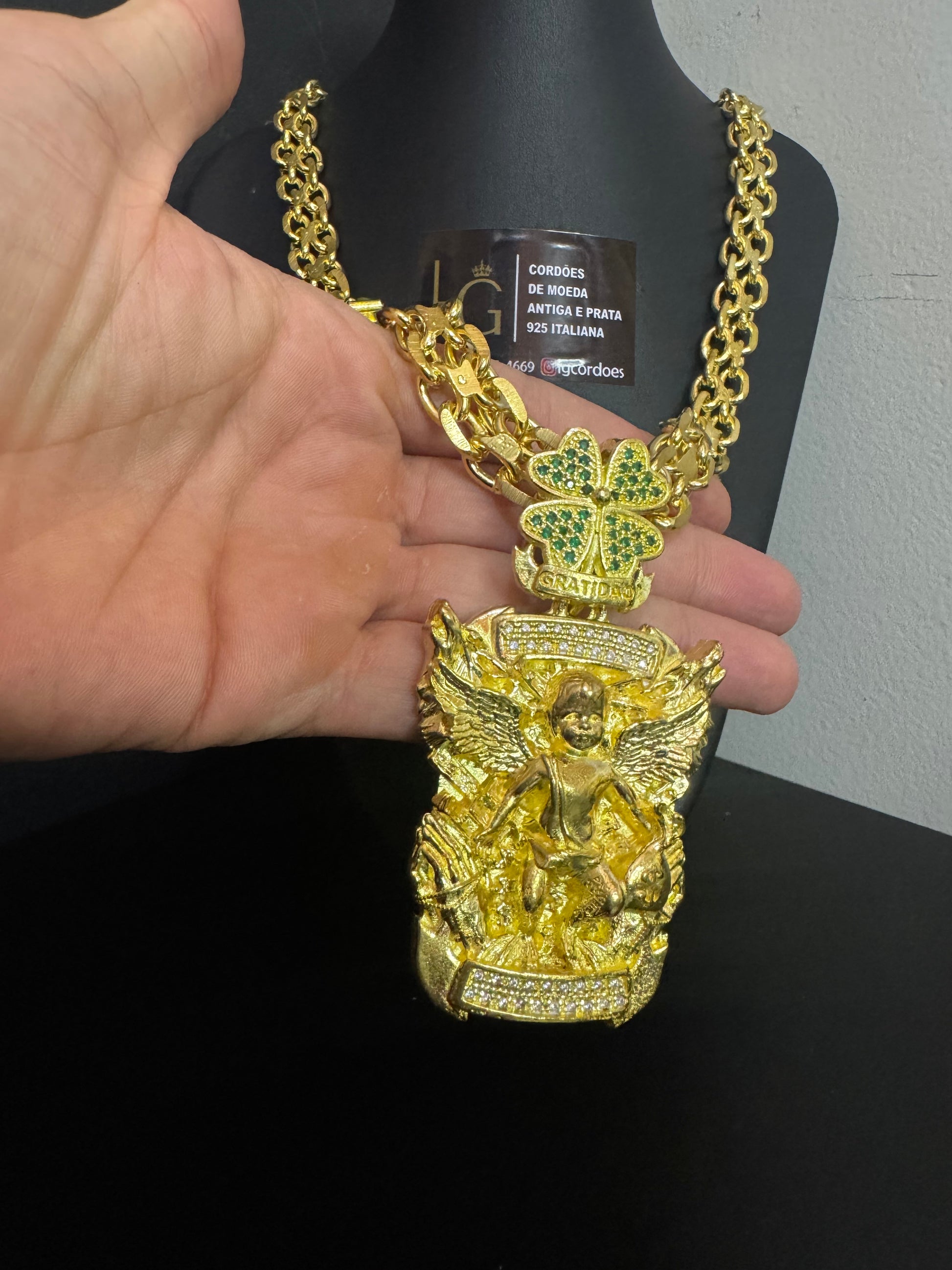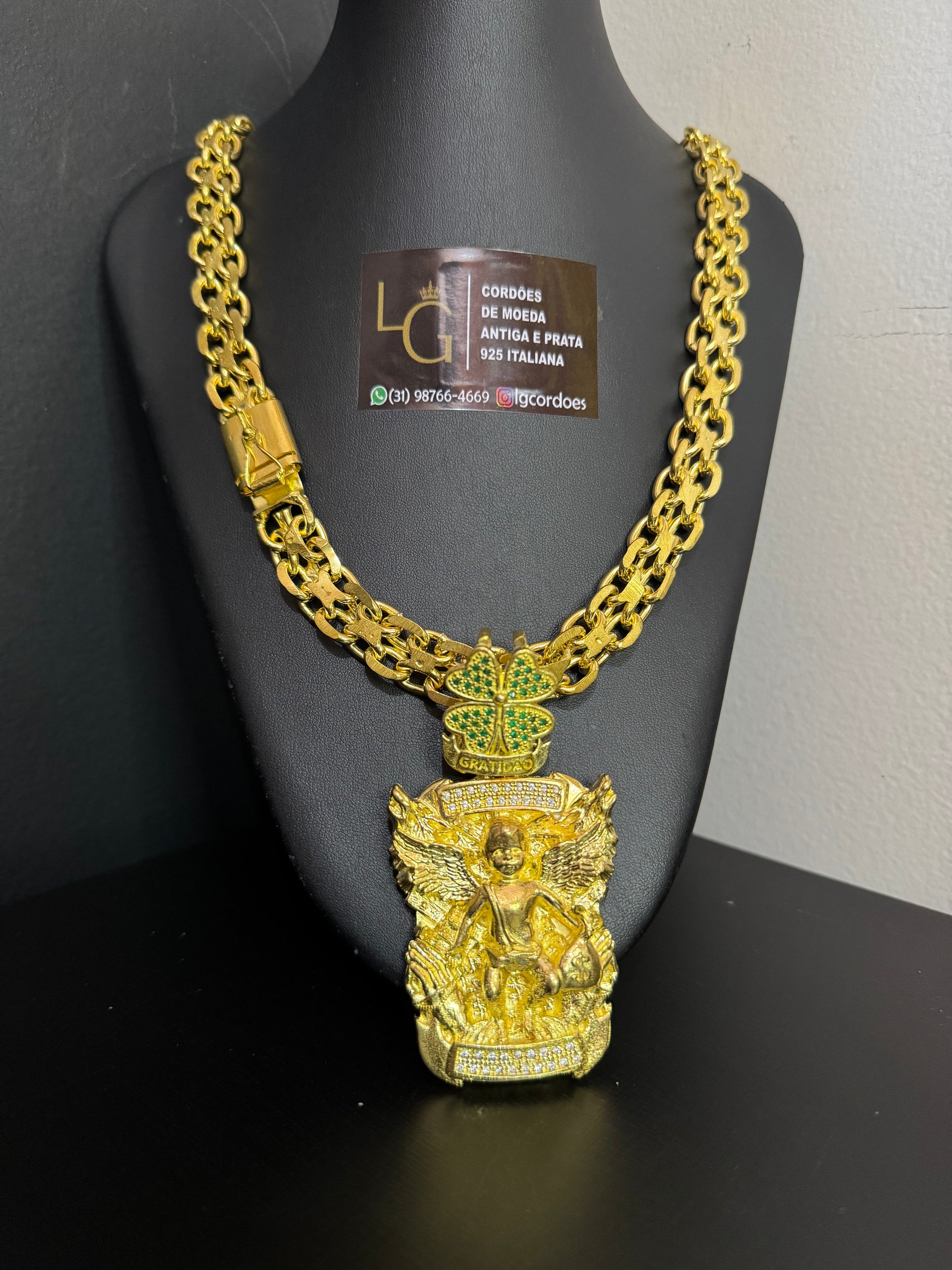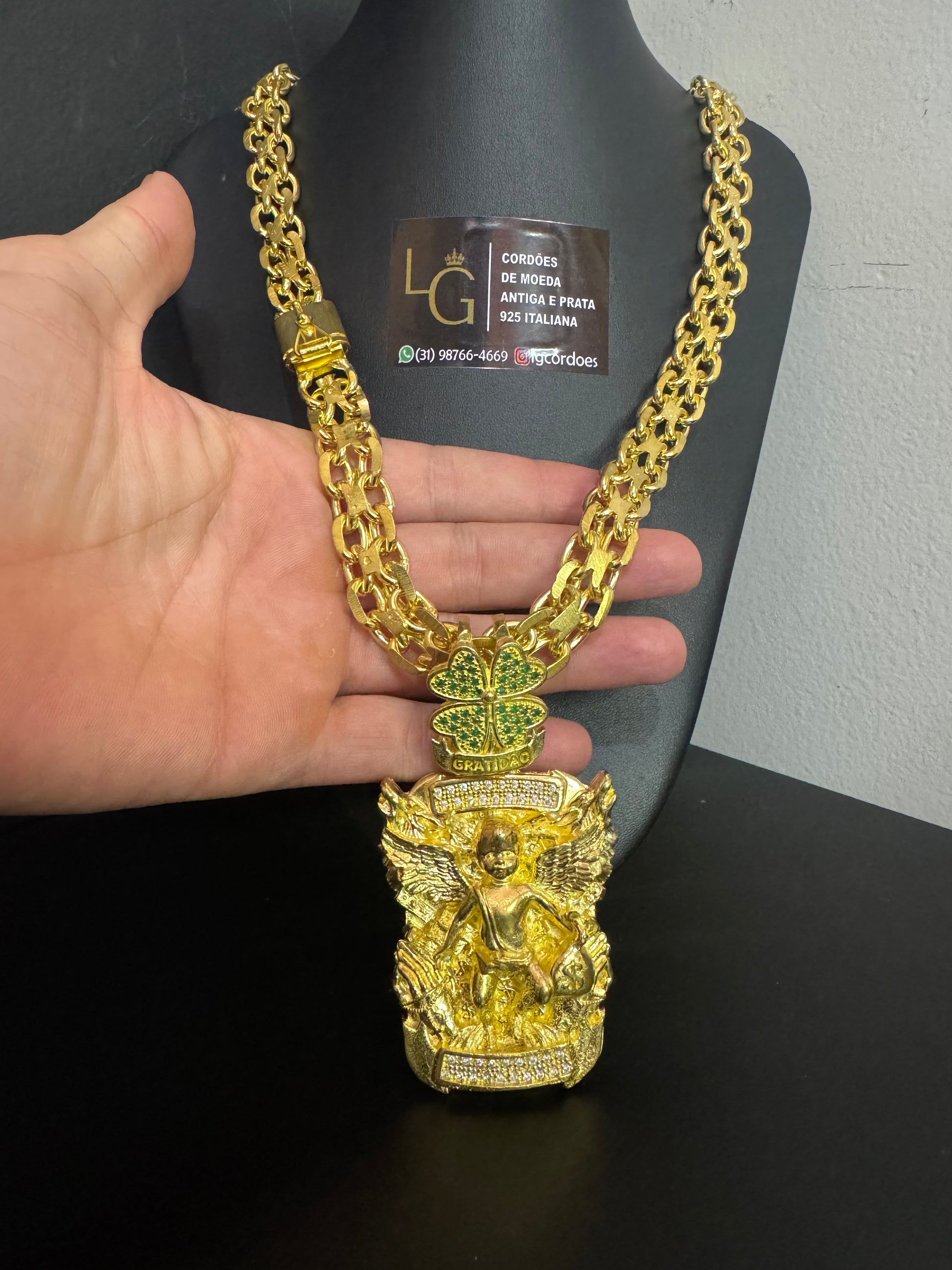 Cordão Nino Abravanel Cadeado Duplo 14mm - Anjo com Malote
