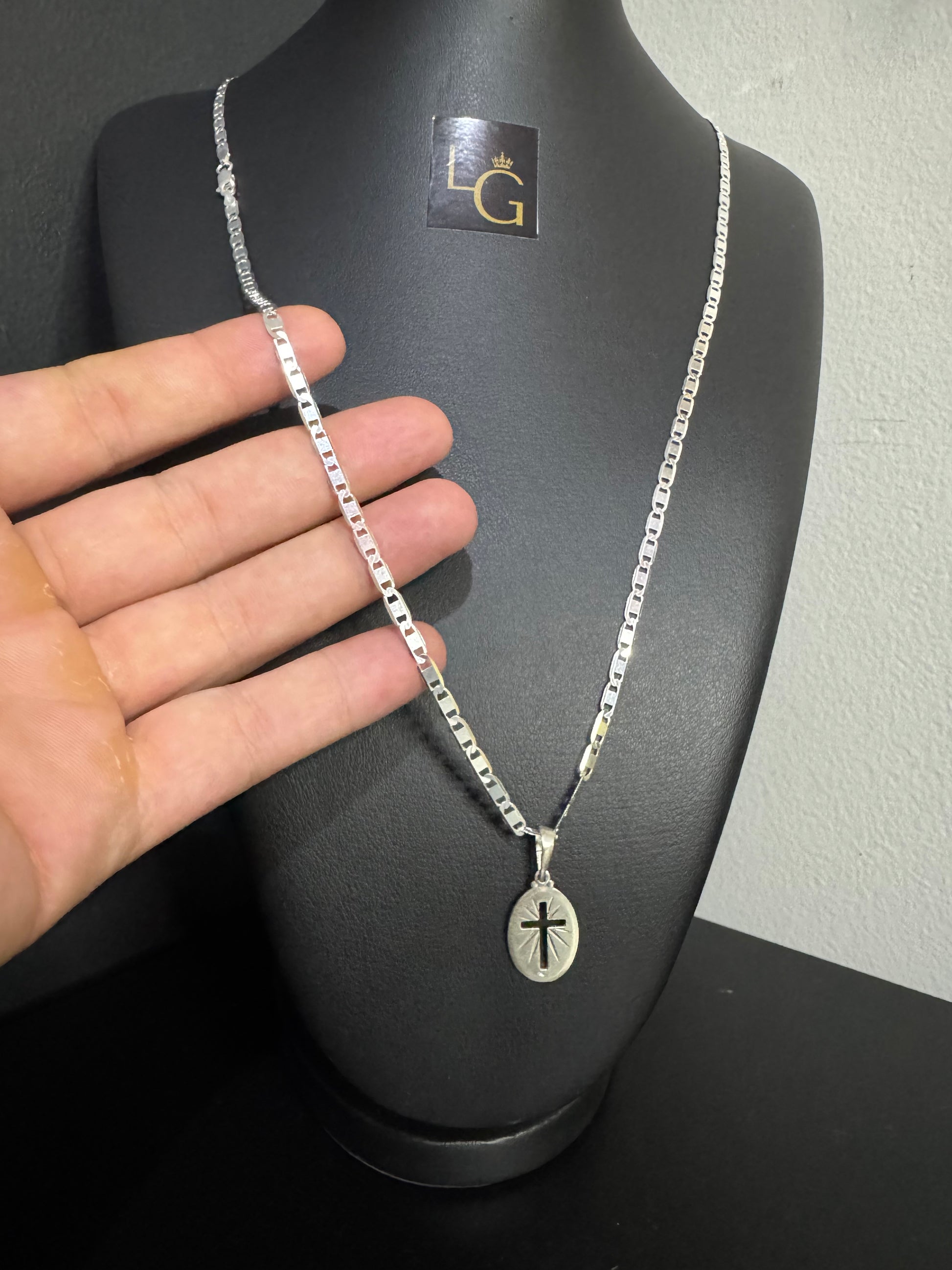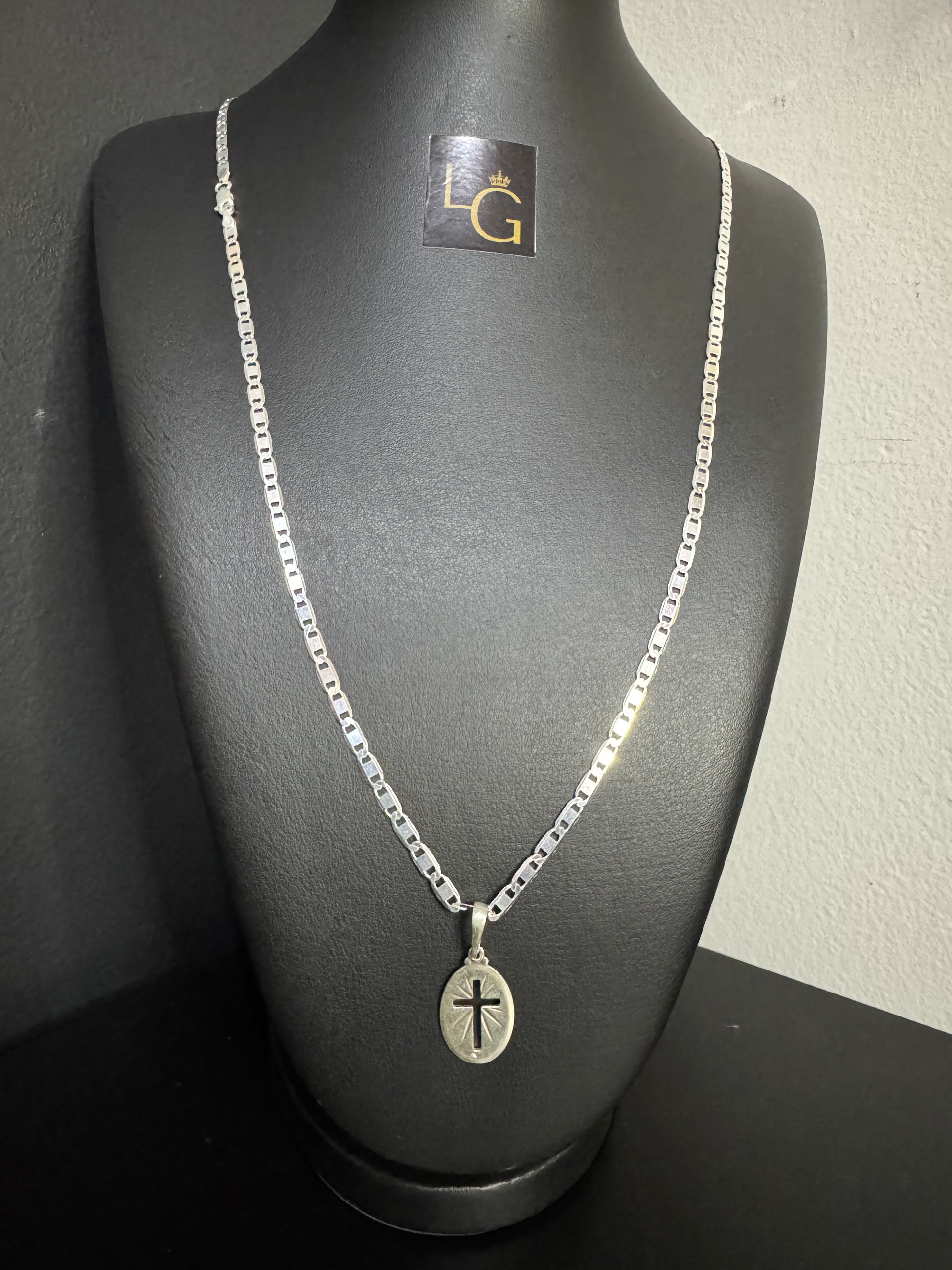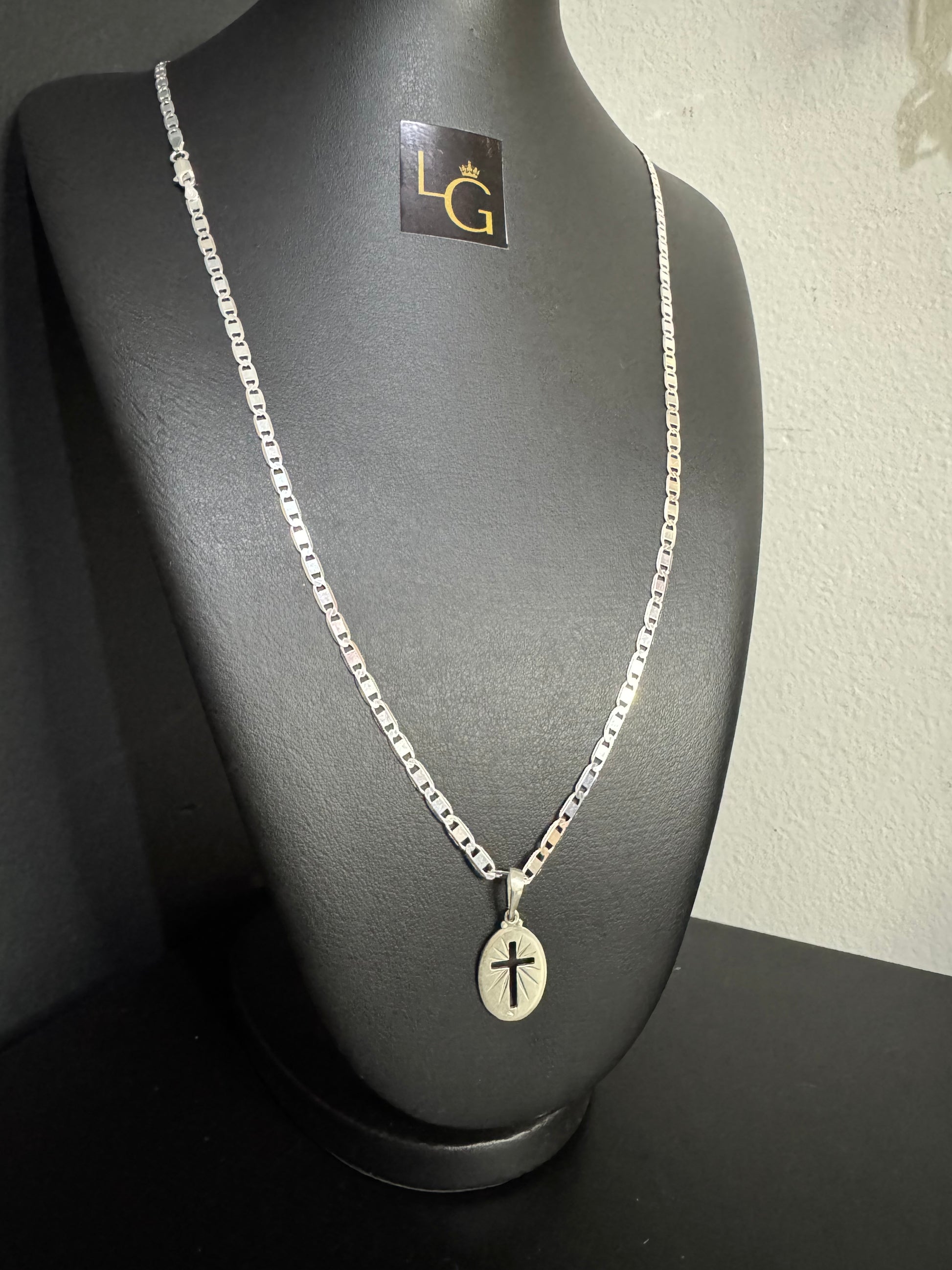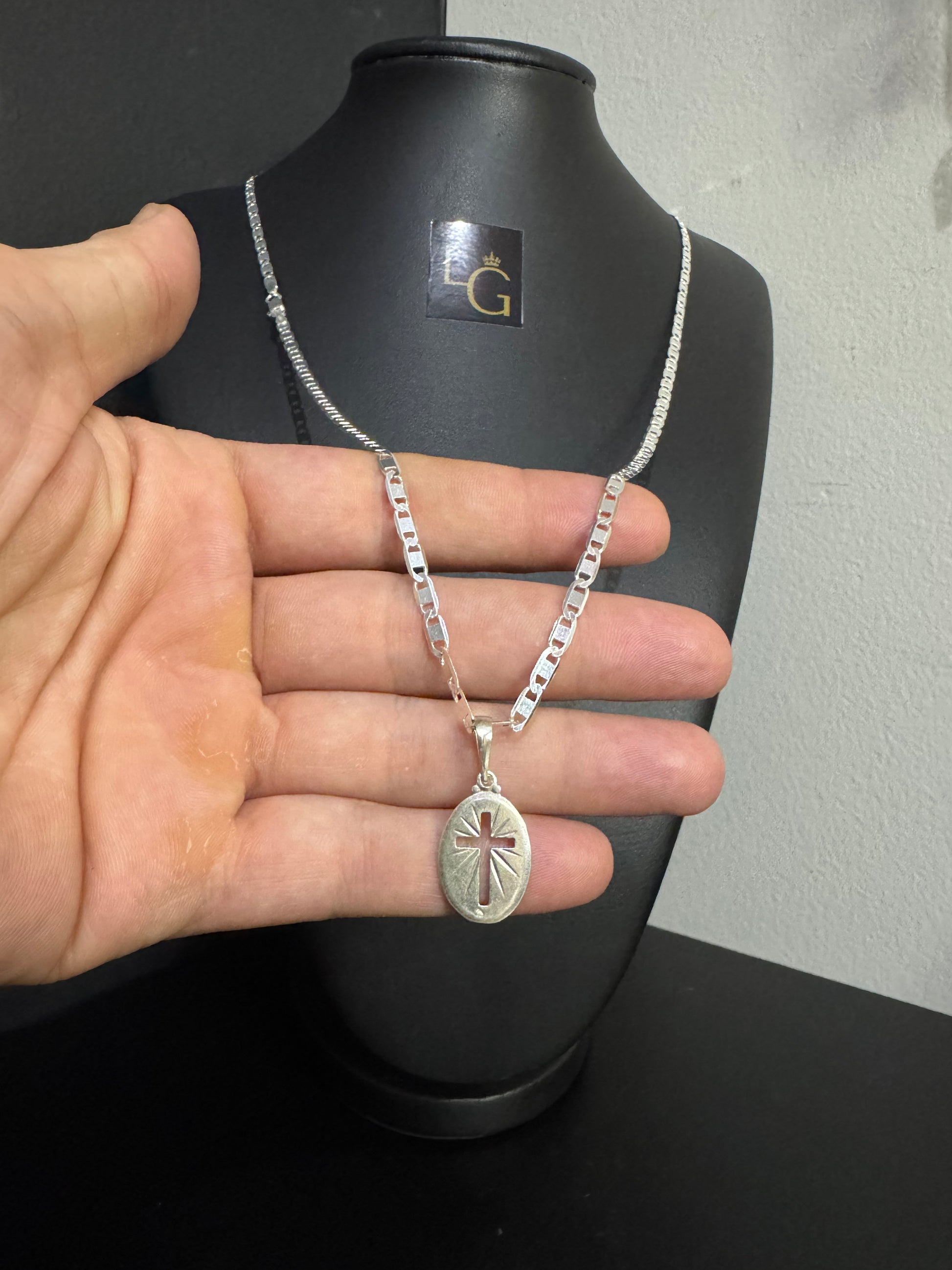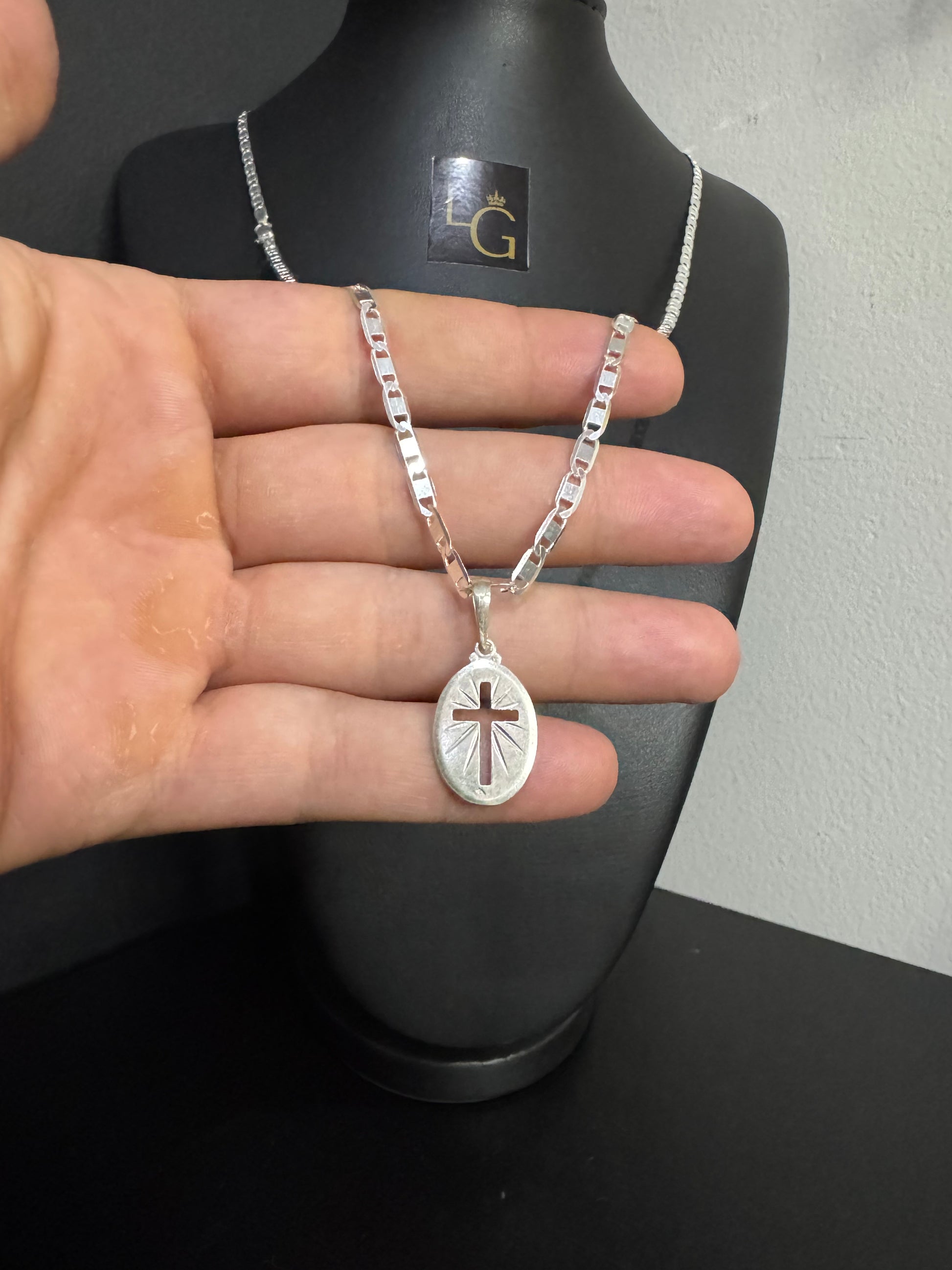 Cordão Piastrine 4mm - Cruz Oval Prata 925