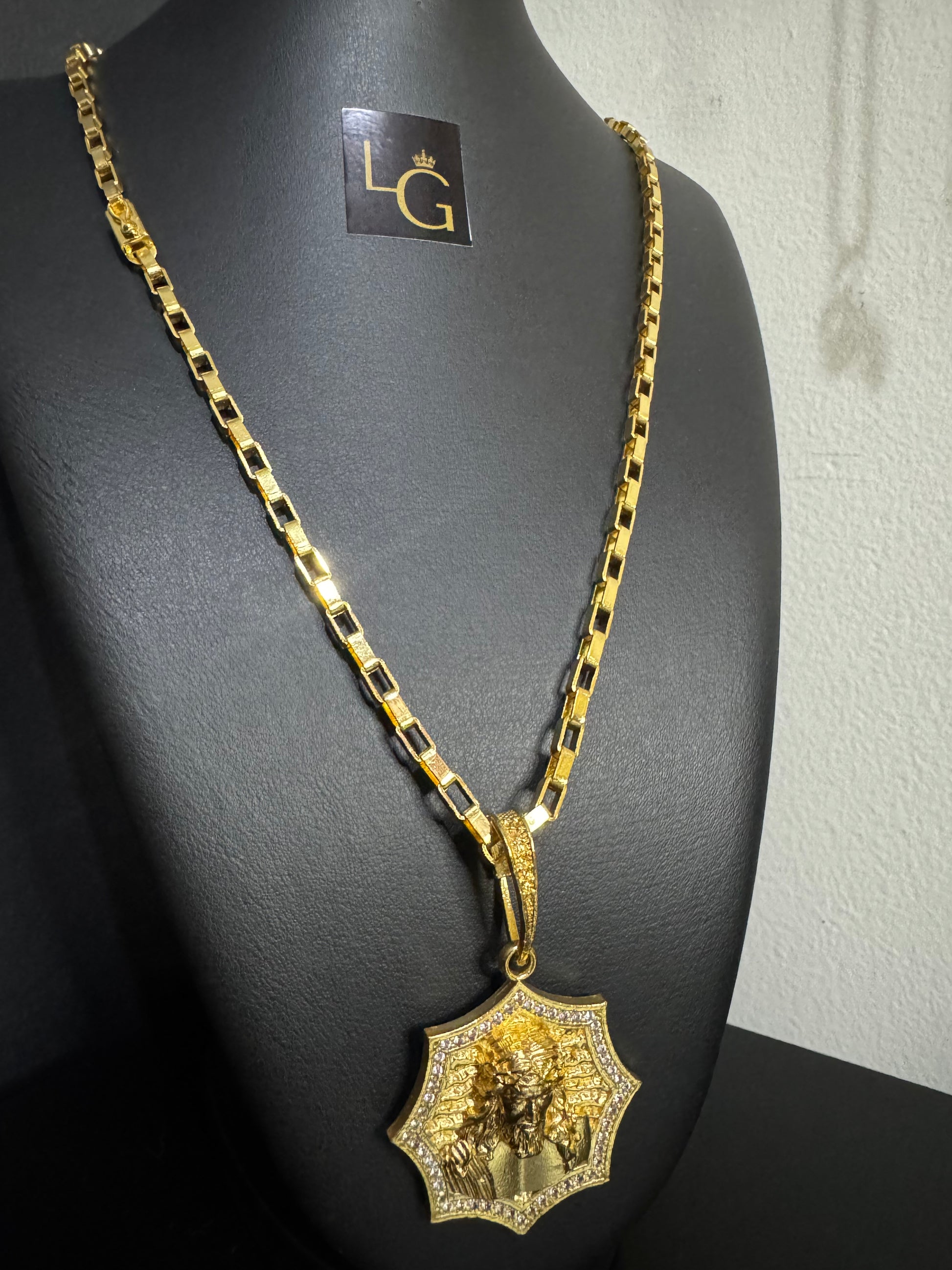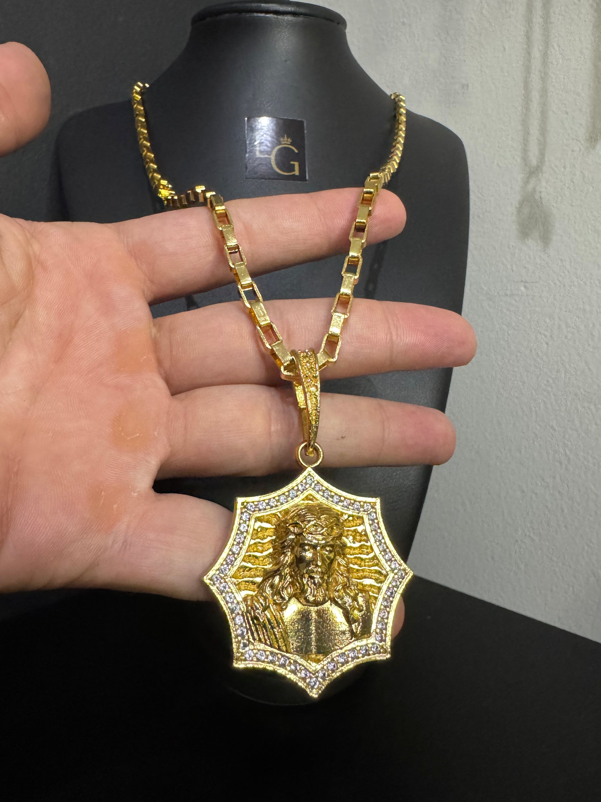 Cordão Tijolinho 5mm - Face de Cristo Detalhada Banhado a Ouro